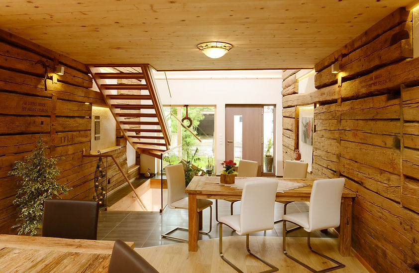 der große Wohnraum mit offener Decke und Galerie; die abgehängte Decke – das „Tafl“ – welches früher für die Lagerung der Getreidegarben verwendet wurde und die Wände mit den alten Balken sorgen für eine besondere Ausstrahlung und Atmosphäre.
